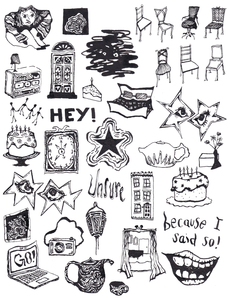 An example of a flash sheet with spot illustrations for tattoos, all created with India ink and dip pens and refined digitally.