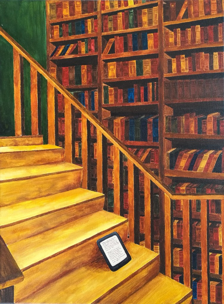 The debate surrounding digital progression and traditional media surfaces daily with every new technological development. Robin Sloan’s novel Mr. Penumbra’s 24-Hour Bookstore describes the relationship by stating “We call it OK. Old Knowledge, OK. […] Where’s the OK? Well, it’s in old books for one thing, and it’s also in people’s heads, a lot of traditional knowledge, that’s what we call TK. OK and TK. Imagine if we could make all that OK and TK available all the time to everyone. On the web, on your phone. No question would ever go unanswered again.” This piece describes a necessary merged relationship between the two, highlighting both the power dynamic that exists, and the atmospheric comfort learning through both methods can bring.
