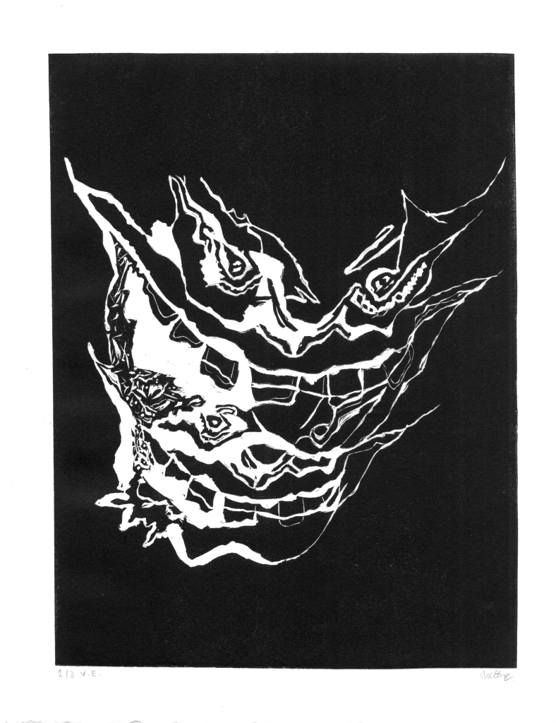 Linocut, 10.5 x 13.5″, V.E. of 4