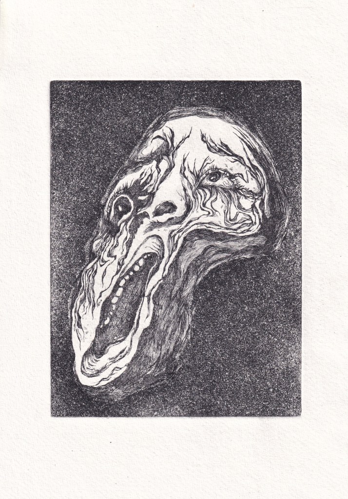 This Thing Is Here – copper etching, 12 x 8″, V.E. of